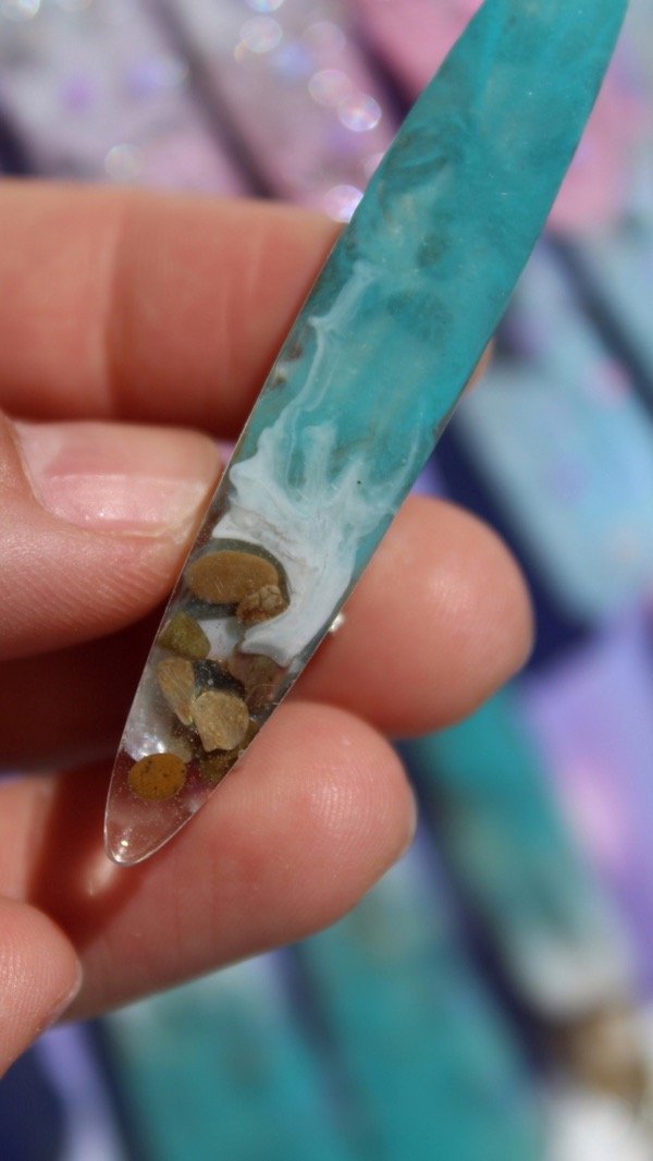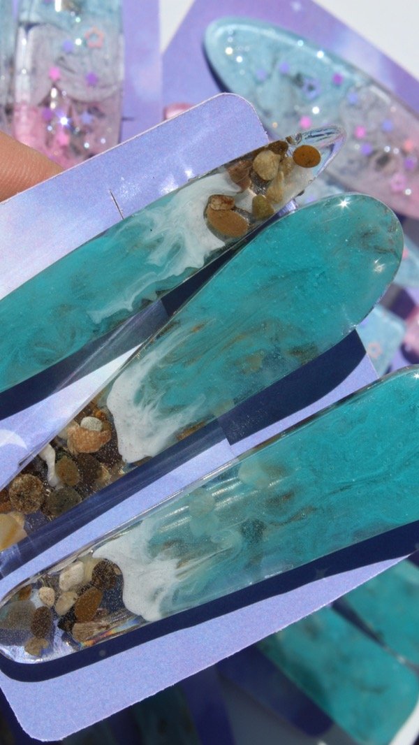 Hebillas pinza.Pack de tres unidades -diseño de mar realizado en resina.